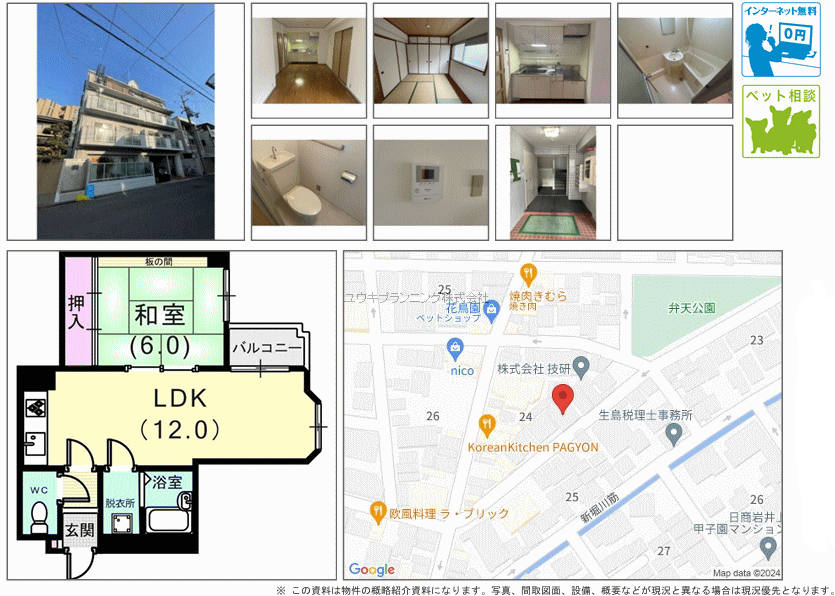| ペット可。靜住街。コンビニ徒歩3分。マクドナルド徒歩3分等、生活至便。阪急西宮ガーデン徒歩5分、お手頃家賃1ルームマンションです。 |
