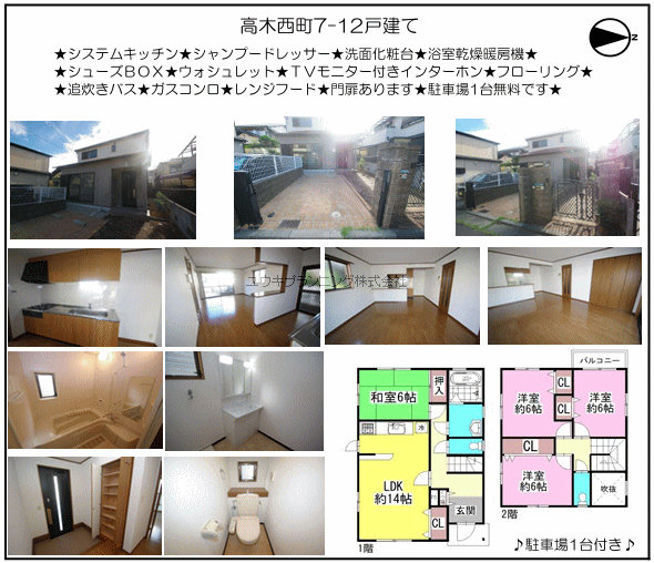 | 閑静な住宅地に建つ戸建ての貸家です。人気の高木小学校・瓦木中学校校区で子育て環境もいいですよ。高木等々お子様の遊び場も安心です。 |
