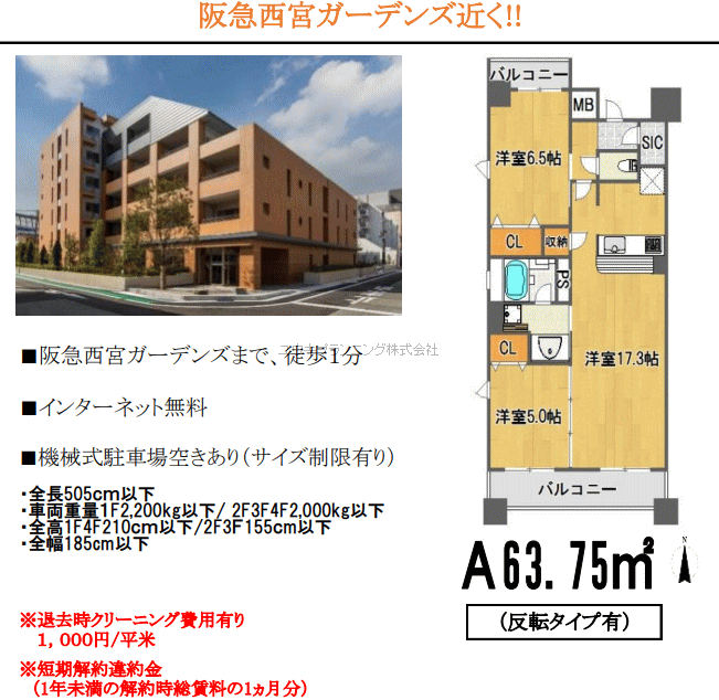 | 閑静な住宅街に建つ築年数の新しいマンションです。阪急西宮ガーデンズ徒歩4分やコンビニ徒歩4分等々生活便利な好立地です。設備も充実しています。 |