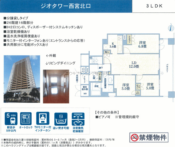駅近マンションです。分譲貸の充実設備が魅力です。生活面も阪急西宮北口周辺に全て揃っています、1階にスーパー有り、奥様も安心です、生活便利な好立地です。 |