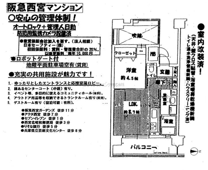 | 閑静な住宅街。駅近レディースマンション。IHシステムキッチン。広々ウォークインクロゼット付。阪急西北駅周辺には生活施設も有り一人暮らしもでも安心です。 |