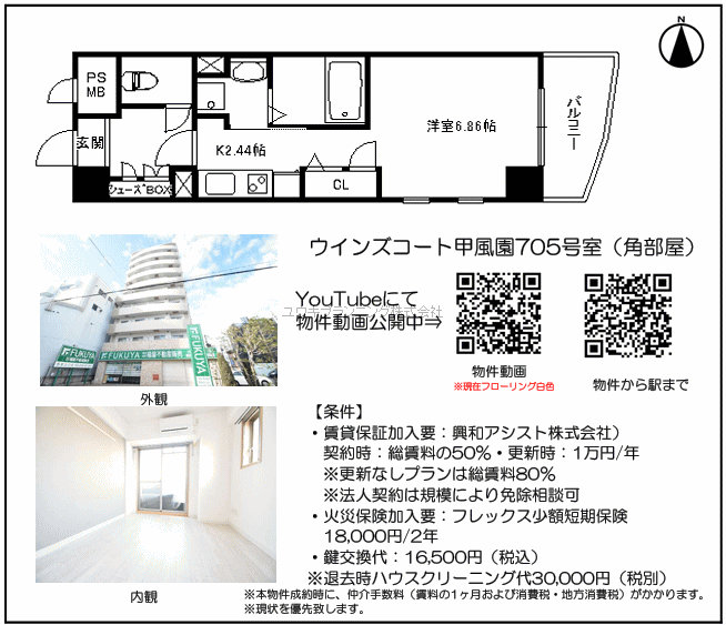 駅近マンション!阪急西宮ガーデンズ徒歩2分生活便利!駅周辺環境は抜群です。生活するには何も不自由しない好立地です。関西学院生、神戸女学院生におすすめ物件です。 |