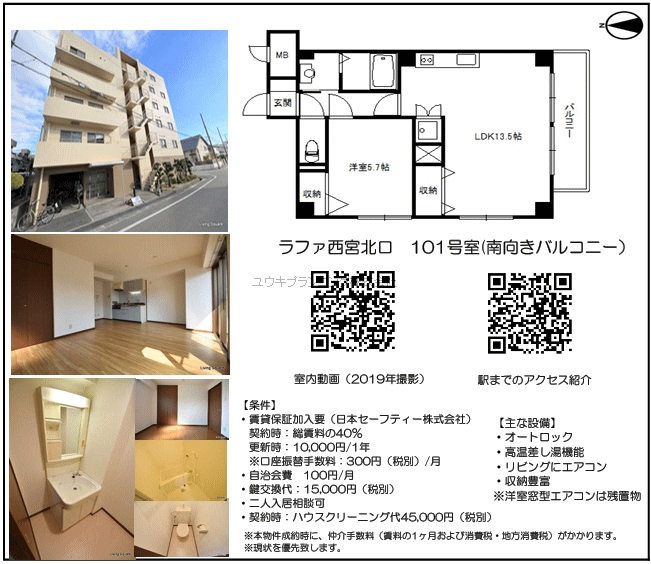 駅近。阪急西宮ガーデンズ徒歩2分等々生活便利。駅前生活を味わってくださ。初めての一人暮らしの方も安心です。 |