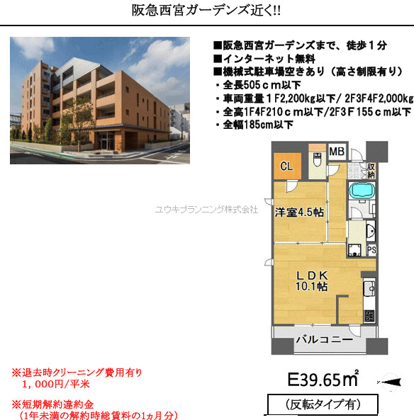 | 閑静な住宅街に建つ築年数の新しいマンションです。阪急西宮ガーデンズ徒歩4分やコンビニ徒歩4分等々生活便利な好立地です。設備も充実しています。 |
