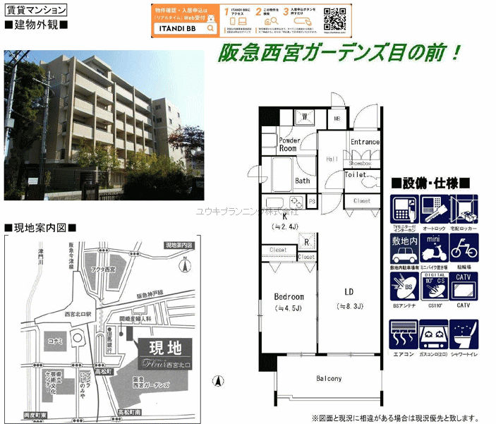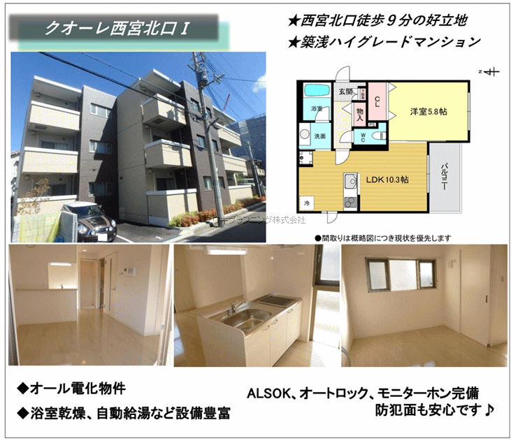 | 阪急西宮ガーデンズ徒歩1分、コンビニ徒歩3分等生活便利な立地です、充実設備で快適生活ができます。 |