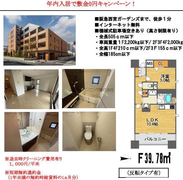 | 閑静な住宅街に建つ築年数の新しいマンションです。阪急西宮ガーデンズ徒歩4分やコンビニ徒歩4分等々生活便利な好立地です。設備も充実しています。 |