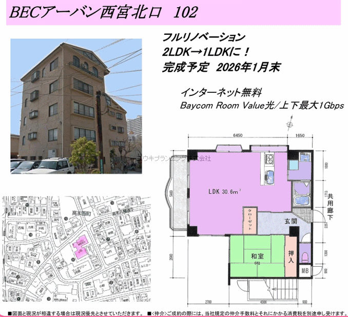 | ペット可。閑静な住宅街に建つマンション。分譲なみの充実設備です。阪急西宮ガーデンズ徒歩2分やコンビ二徒歩1分等々生活施設が全て徒歩5分圏内に有り、初めての一人暮らしの方も全く心配無しです。 |