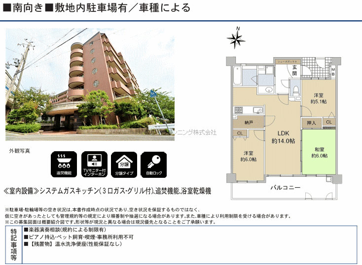 | 駅近マンションです。コープ等生活施設が全て徒歩2分圏内で奥様お買い物らくらく物件です。生活至便。東南角部屋日当り良好。駐車所有りです。 |