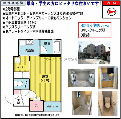 日当り良好!角地のマンション!セブンイレブン徒歩3分。阪急西宮北側には生活施設が全て揃っています、初めての一人暮らしや関西学院生、神戸女学院生にもおすすめ物件です。 大学まで自転車10分で通学で通学できます、他空部屋有ります、お問い合わせください。 |
