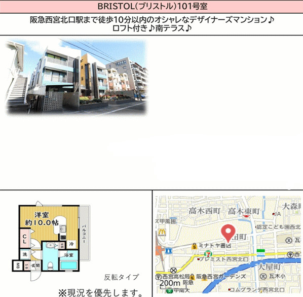 阪急西宮ガーデンズ徒歩5分。マクドナルド徒歩3分やコンビ二徒歩5分、ファミリーレストランさと徒歩2分等々生活便利な好立地です。 |