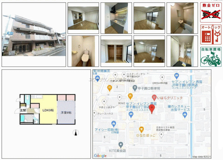 | 駅近。生活施設が全て徒歩5分圏内に有り初めての一人暮らしの方でも全く心配無です。阪急西宮ガーデンズも徒歩5分と休日のお買い物も楽しみです。 |