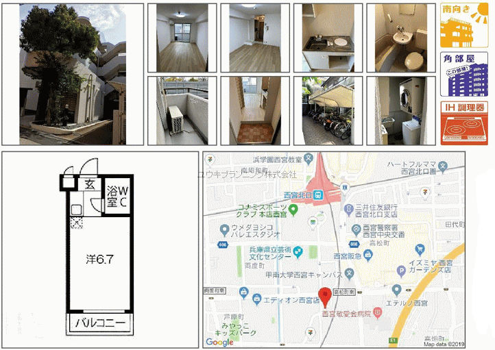 | 阪急西宮ガーデンズ徒歩1分、コンビニ徒歩2分、駅前には生活施設が全て揃った好立地生活便利です。始めての一人暮らしも安心です。関西学院生や神戸女学院生にもおすすめ物件です。大学まで自転車で18分。 |