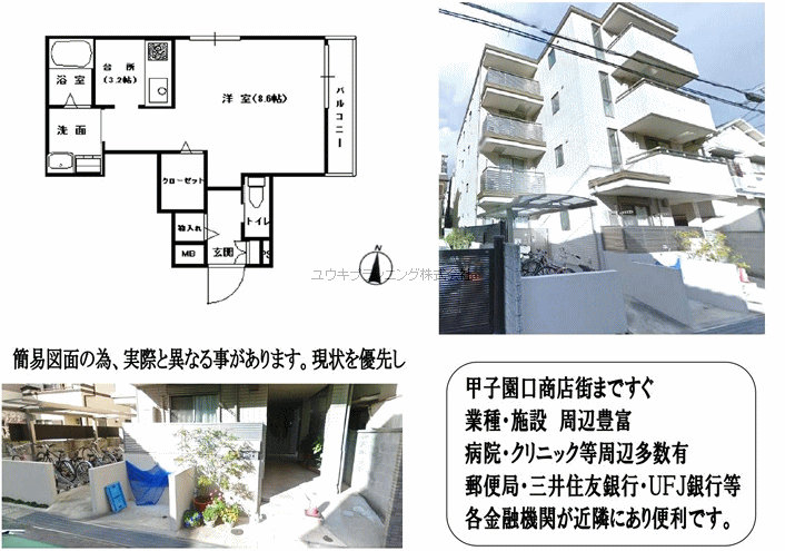 | 生活便利な好立地の広めのワンルームです。1階には郵便局が有りまた甲子園口中央商店街徒歩2分や生活施設が全て徒歩5分圏内に有り大変住みやすい環境です。 |