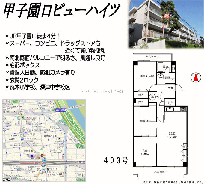 | 甲子園口中央商店街徒歩2分買い物便利。閑静な住宅街に建つマンションです。広々バルコニー付。 |