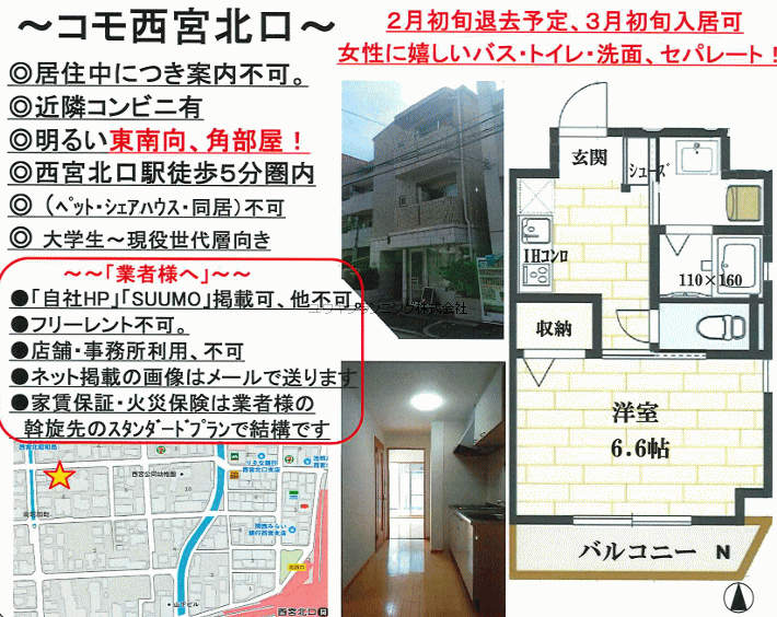 | 阪急西宮ガーデンズやプレラ西宮等々生活施設が徒歩5分圏内に有ります。生活便利!コインランドリー有。オートロックで女性も安心。 |