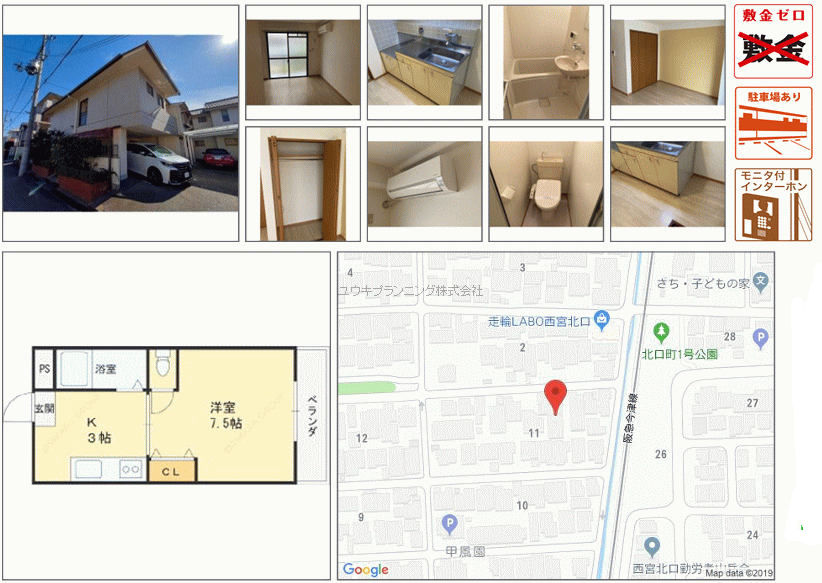 | 西宮市甲風園2丁目 | 阪急神戸線/西宮北口駅 徒歩10分 |