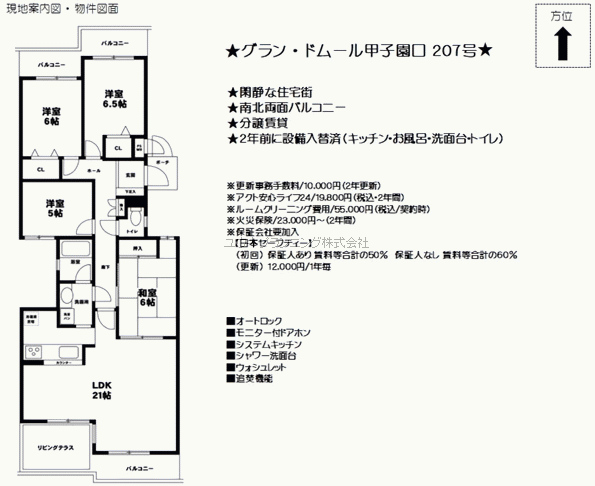 | 諸費用 | 家賃保証会社加入要 72,350円 保証料更新料 12,000円 その他 84,800円 |