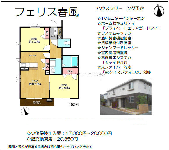 | 諸費用 | 家賃保証会社加入要 51,000円 鍵交換代 20,350円 保証料更新料 8,000円 |