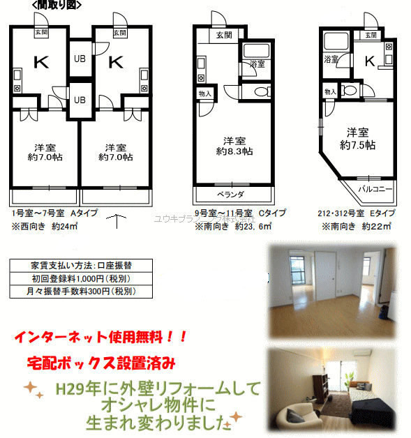 | 特色 | エアコン、BS、バルコニー、収納、CATV、インターネット対応、給湯器付、他空き物件有り |