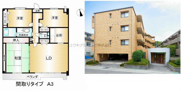 | 特色 | 給湯器付、オートロック、バストイレ別、室内洗濯機置場、バルコニー、駐車場、CATV、角部屋 |