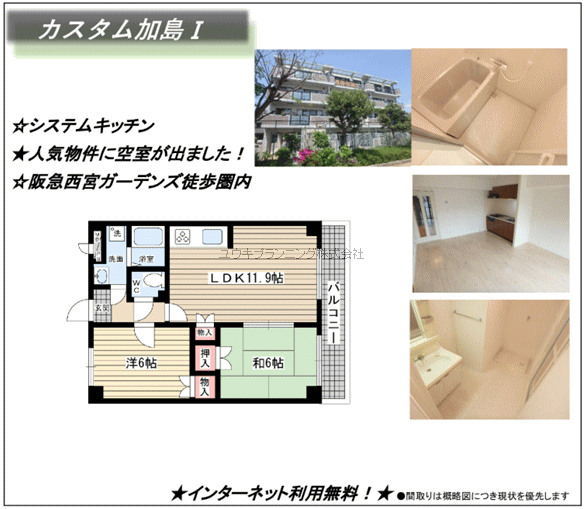 | コメント | 靜住街。阪急西宮ガーデンズ徒歩5分。生活便利。角部屋、南側公園日当り良好、お子様の遊び場も心配無しです。。コンビ二徒歩3分。 |
