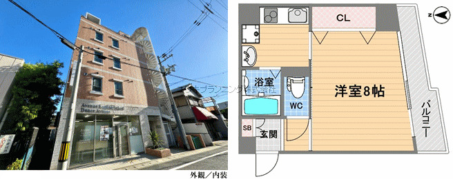 | 特色 | オートロック、宅配ボックス、エレベータ、バストイレ別、ガスキッチン、TV付インターホーン付、給湯器付、エアコン、バルコニー、洋室 |