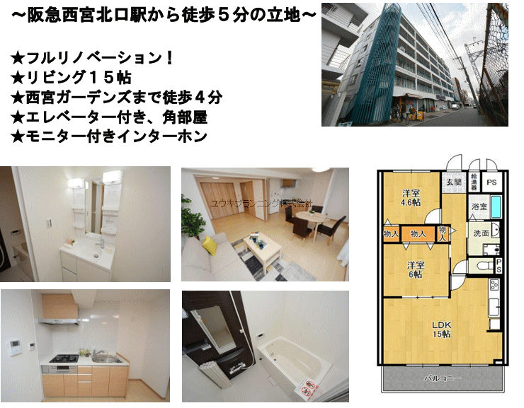 | コメント | 駅近マンションで生活便利です!勿論阪急西宮ガーデンズ徒歩1分。コンビニも徒歩1分。 |