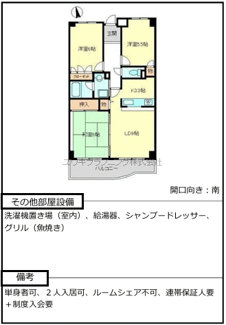 | 諸費用 | 家賃保証会社加入要 93,600円 保証料更新料月々 1,755円 その他 89,100円 |