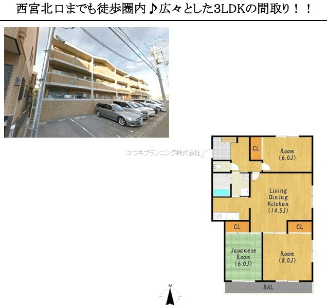 | 特色 | バストイレ別、室内洗濯機置場、収納、バルコニー、給湯器付、駐車場 |
