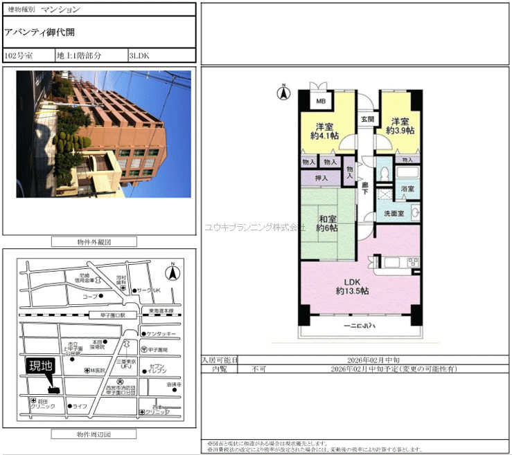 | 諸費用 | 家賃保証会社加入要 64,000円 保証料更新料 12,000円 その他 11,440円 |