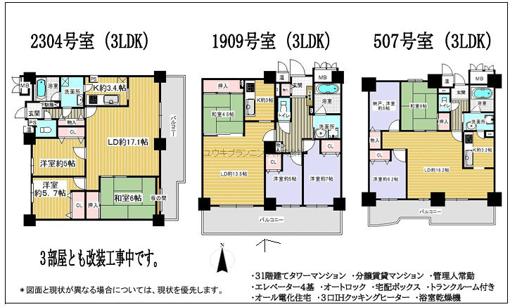 | 特色 | バストイレ別、室内洗濯機置場、エアコン、エレベータ、オートロック、追焚バス、バルコニー、トランクルーム、CATV、インターネット対応、宅配ボックス、給湯器付 |